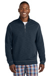 A fashionable sweater alternative, youâ¿¿ll always look pulled together and sophisticated in this comfortable 1/2-zip that features a slub texture knit and sun-bleached wash. 11.7-ounce, 45/33/22 cotton/pima cotton/ Tencel Lyocell Pigment garment overdyed fabrication Mockneck with 1/2-zip placket Side panels built-in for stretch Rib knit cuff and hem Distinctive contrast stitching Embroidered Marlin at center back neck Cut-out Marlin on zipper pull